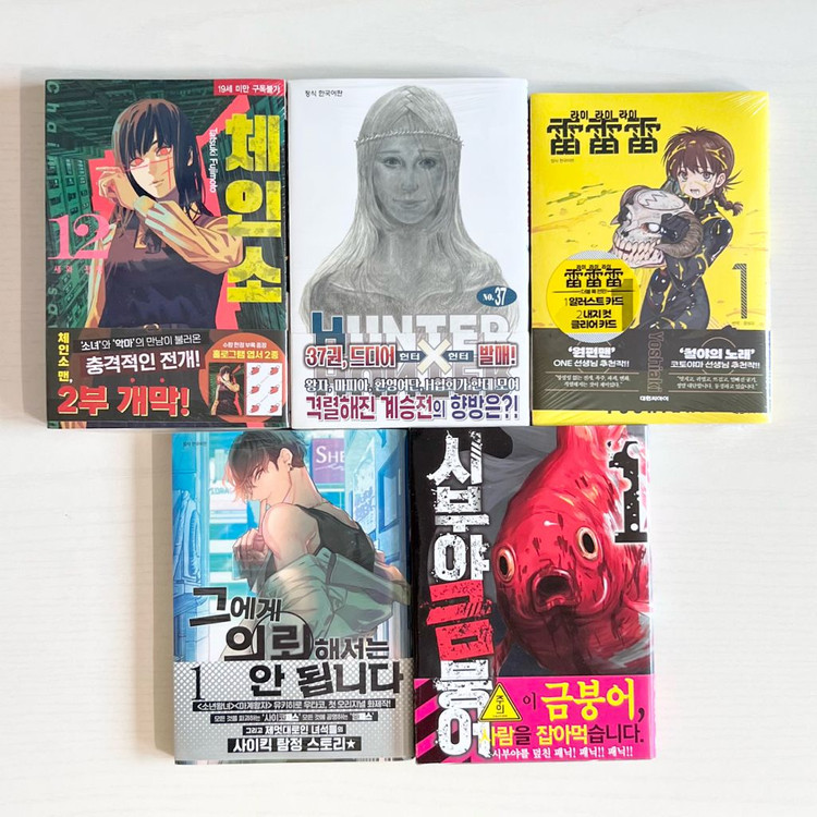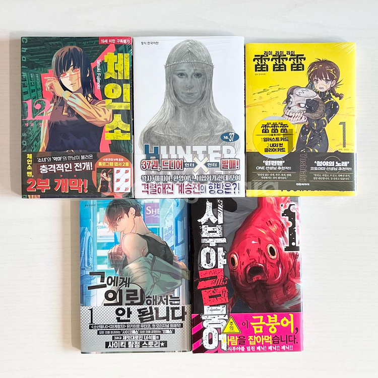 개인정보(거래정보)를 주고받는 행위는 사기에 노출될 수 있으므로 즉시 중고나라로 신고해 주세요5권 일괄 판매 개별 문의 차단 시부야 금붕어만 개봉 읽지는 않았는데 기스 있음 겉비닐 찢김, 변색, 모서리 등 하자 예민하면x