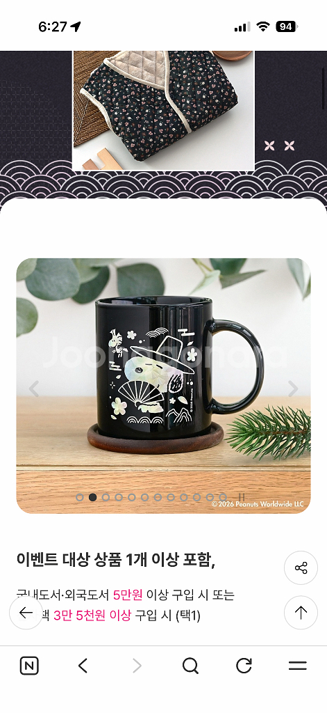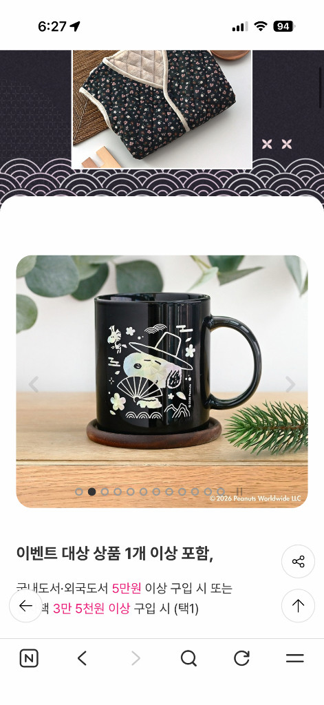 알라딘 스누피 머그 (나전칠기 스타일) 개봉후 상품상태확인후 포장, 박스채드립니다 Gs반택가능+2200