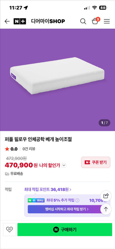 퍼플 필로우 인체공학 베개입니다 젤 패드 98%, 폴리에스터 섬유 패드 2%로 구성되어 있으며, 16x24x3인치 사이즈입니다 커버는 나일론 92%, 스판덱스 8%로 제작되었고, 미국에서 제조된 제품이에요 수백 개의 공기 채널이 최적의 공기 흐름을 촉진하여 시원하고 방해받지 않는 수면을 제공하며, 베개를 뒤집을 필요가 없어 편리합니다 시중에 나와있는 이런 벌집모양 젤패드의 퍼플베개들은 모두 이제품을 따라서 만든것입니다. 무거워서 베개가 안정적이고 전체를 물로 씻을수 있어 늘 위생적으로 사용가능합니다. 가족들은 너무 편하고 좋다하네요. 목이 아파서 해외 직구로 배송비까지 정말 비싸게 주고 샀는데 저한테는 그냥 싸구려 솜베개가 맞는거 같습니다 ㅠ 높이조절 패드가 없어 그냥 싸게 드려요. 원래 커버는 한번도 안쓰고 늘 겉에 2중으로 커버 씌워서 사용했구요 둘다 깨끗이 빨아놓았으니 겉에 커버도 원하시면 같이 드릴게요. 택배 원하시면 보내드리지만 부피와 무게가 있어 직거래우선해요~ 수유역이나 CU 강북수유점으로 오시면 됩니다. :) 영일영-67공칠-영444 어플확인을 못할수도 있어서 문자문의 주시면 감사하겠습니다.(알림설정을 했는데도 왜그런지 알림이 오지를 않네요;;) *혹시나 걱정하시는분 계실까봐 말씀드려요. 중고나라 카페에 10년넘게 거래내역 있으니 걱정 안하셔도 됩니다. 전화번호,아이디 한번도 바뀐적 없습니다.