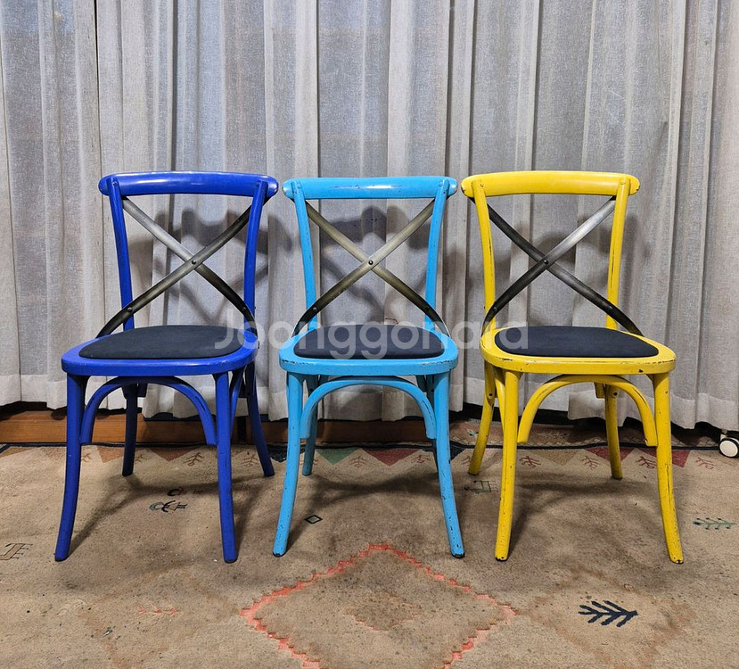 인테리어 빈티지 크로스백 체어 사이즈 가로 45 깊이 50 높이 89cm 앉는부분까지 높이 46cm 가격 개당 5만원 지역 잠실 배송 착불 교환 x 환불 x