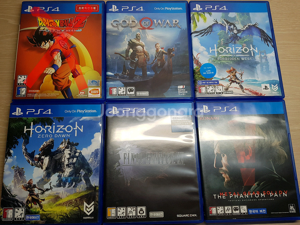 드래곤볼 Z 카카로트-(판매완료) 갓오브워- 0.8 호라이즌 포비든웨스트- 1.7 호라이즌 제로던- 0.6 파이널판타지15- 1.0 메탈기어솔리드 팬텀패인- 1.2 일반택배 3,800원 반값택배 1,900원 매일 오후 5시30분에 모든택배 보냅니다 이후 거래는 다음날 오후 5시30분에 보내드립니다~ 택배 뽁뽁이 감싸서 안전하게 보내드립니다 연락주세요:)