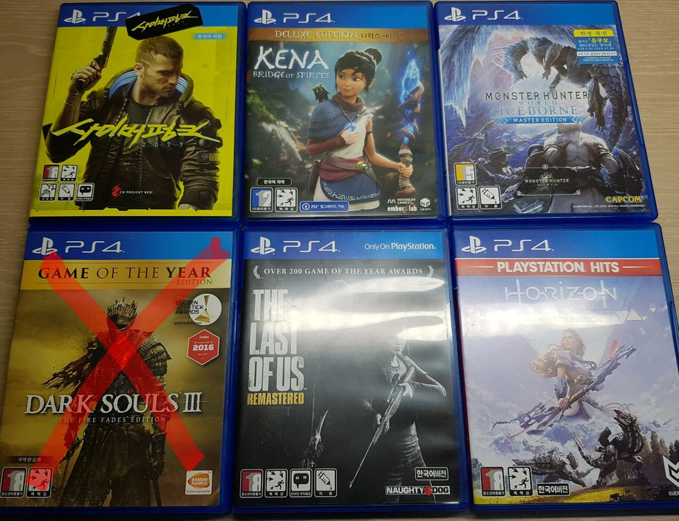 사이버펑크- 0.8 케나- 2.5 몬스터헌터월드 아이스본- 1.7 다크소울3 고티에디션-(판매완료) 라스트오브어스 리마스터- 0.6 호라이즌 제로던 컴플리트- 0.6 일반택배 3,800원 반값택배 1,900원 매일 오후 5시30분에 모든택배 보냅니다 이후 거래는 다음날 오후 5시30분에 보내드립니다~ 택배 뽁뽁이 감싸서 안전하게 보내드립니다 연락주세요:)