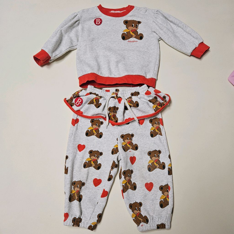 너무 귀엽게 입힌옷이에요 세탁감은 보이지만 깨끗히 입혔어요 무릎한쪽에 미세하게 보이는 얼룩있어요 반값(+2,000)가능합니다