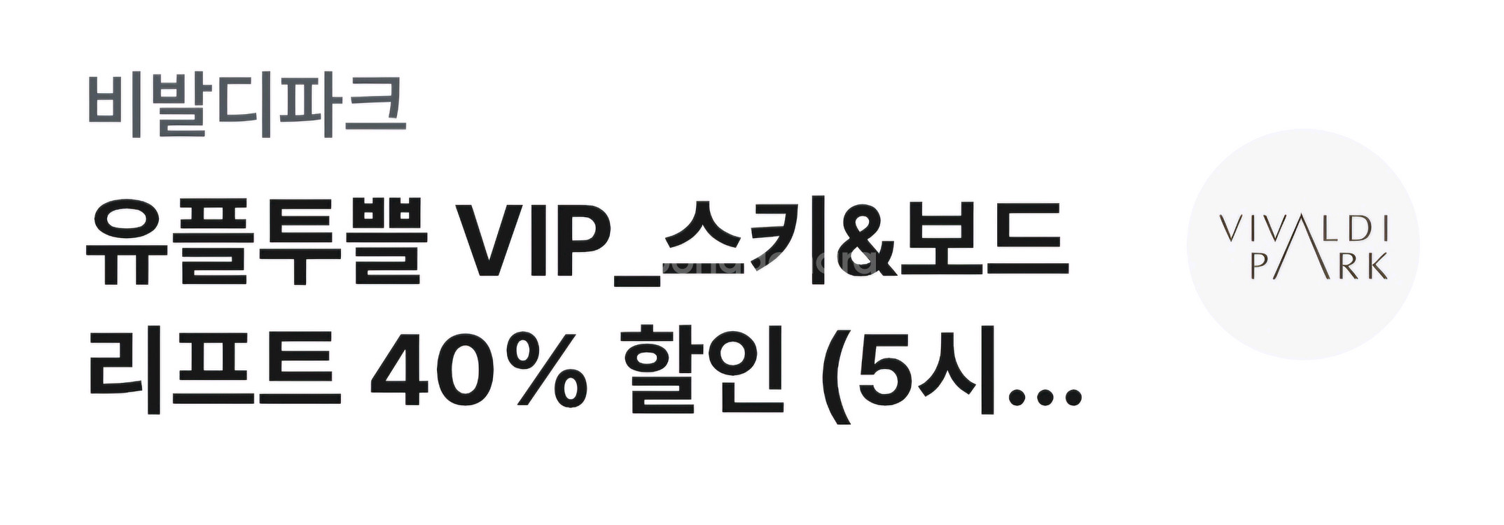 비발디파크 스키&보드 리프트 40% 할인권 5시간권 한정이며, 26년 3월 2일까지 사용 가능 대인, 소인(만 13세 이하) 모두 적용 가능하며, 권종에 따라 할인 적용 요금이 다릅니다 - 리프트 5H 대인 정가: 주중 75,000원 / 주말 91,000원 - 리프트 5H 소인 정가: 주중 68,000원 / 주말 82,000원 쿠폰 다운로드 후 비발디파크 스키장 현장 매표소에서 직원 확인 후 할인된 가격으로 구매하여 이용하시면 됩니다 유효 기간 안에 쿠폰 등록 및 사용을 완료해야 할인 혜택을 받을 수 있습니다
