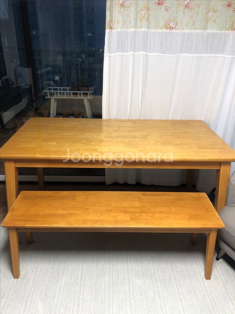 묵직한 원목이라 흔들림없이 잘 썼어요 1600x850사이즈 식탁용으로 아이들 거실 책상용으로 두루 썼구요 벤치의자라 활용하기 좋았어요 원목이라 어디든 다 잘 어울려요 벤치의자는 방석을 깔아써서 벗기면 깨끗한 편이구요 테이블은 잔기스들이 보여요(쓴흔적)중간에 찍힌부분도 보이구요 다리에도 기스들 보이네요 이건 조금만 써도 어쩔수 없더라구요 이게 좀 빈티지해 보여서 나름 괜찮아요 유리나 아님 아크릴 같은거 깔아 쓰면 좋을듯하구요 사진속 식탁의자 말고 벤치+테이블 판매해요 벤치의자 방석은 모던하우스껀데 지금은 단종이라 구할수 없어 좀 찢어지고 낡아 있는데 쓰는데 지장 없어요 필요하심 같이 드릴께요^^ 직접 가져 가셔야 합니다 옮길때 같이 도와드릴수 있어요