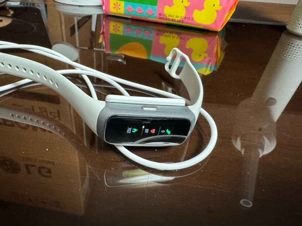 삼성 갤럭시 핏1 화이트 색상 판매합니다 사진과 같이 충전기 포함되어 있습니다 (충전 케이블+충전포트) 심박수, 걸음수 등 다양한 활동 추적이 가능하며, 0.95인치 AMOLED 디스플레이로 선명한 화면을 제공합니다 24시간 활동 추적 기능과 5ATM 방수 등급으로 일상생활에서 편리하게 사용할 수 있어요 120mAh 배터리로 최대 7일간 사용 가능하며, 23g의 가벼운 무게로 착용감이 좋습니다 차보고 운동한 적 없습니다 거의 새제품입니다
