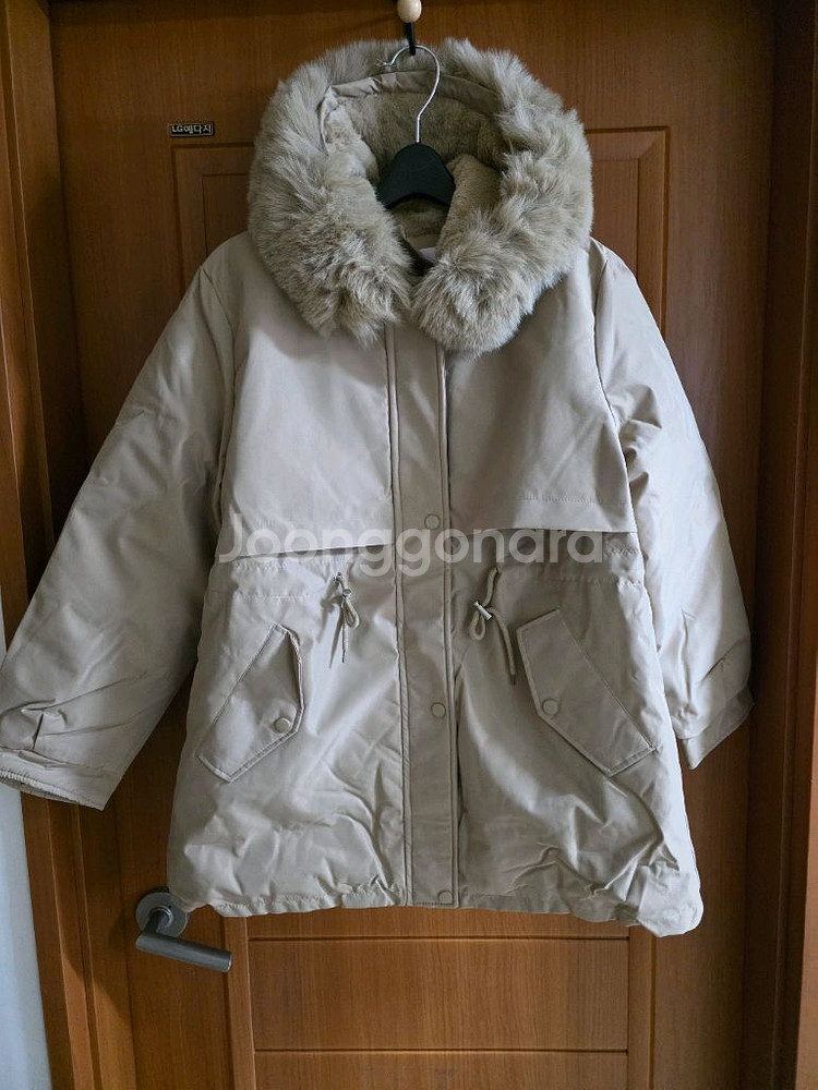 가단 54cm 총장 76cm 새상품 표기사이즈는 2XL이지만 작게 나와 55사이즈까지 추천드려요..날씬 66도 사진은 밝게 나왔는데 좀 더 짙은 예쁜 진베이지색상이예요.. 두번째 사진 참고하시구요.. 퍼 탈부착 가능.. 허리 스트링 되어 있어 사이즈 조절 가능.. 안쪽은 팔부분 빼곤 털로 되어 있어 따뜻해요.. 뒷모습도 금색 포인트로 진베이지 바탕색이랑 넘 잘 어울리고 예뻐요^^