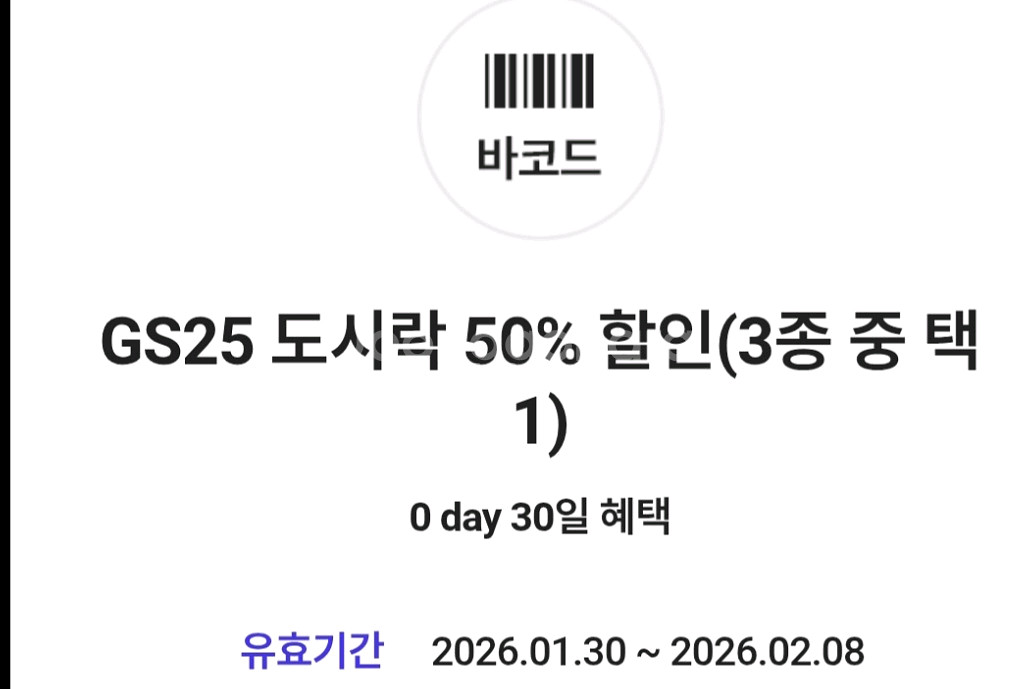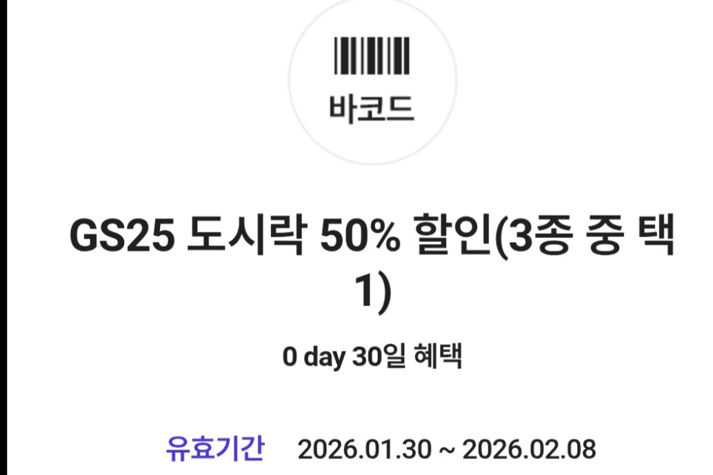 Gs25 도시락 50%할인쿠폰(3종택1)