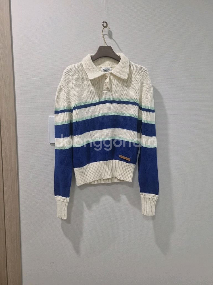 마리떼 프랑소와 저버 스트라이프 카라 니트입니다. 산뜻한 스트라이프 패턴이 돋보이는 제품입니다. 퀄리티 좋은 니트 소재로 제작되어 부드러운 착용감을 자랑합니다. 사이즈 원사이즈 가단48총장54 상태깨끗해요.