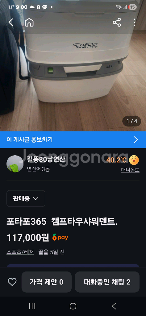 캠핑용 오터텐트 판매해요. 사용감은 있지만 기능상 문제없이 잘 작동합니다. 캠핑 좋아하시는 분께 추천드려요! 포타포티 샤워 텐트입니다. 둘다 새제품입니다.