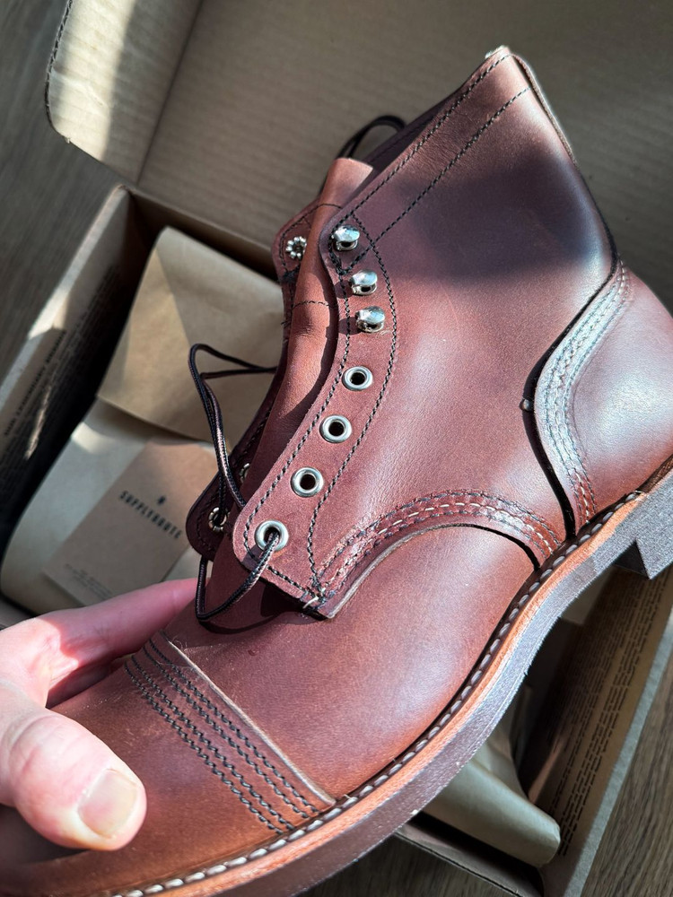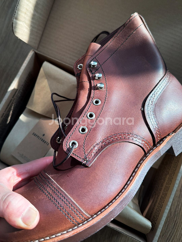 레드윙 아이언 레인저 8111 – 앰버 하니스 (새상품) 미국 워크부츠의 정수를 상징하는 레드윙 아이언 레인저 8111 모델입니다. 아이언 레인저 특유의 더블 토 캡과 묵직한 실루엣, 그리고 시간이 지날수록 깊어지는 앰버 하니스 가죽의 에이징 매력이 돋보이는 클래식한 제품입니다. 본 제품은 미착용 새상품으로, 가죽 컨디션·아웃솔·내부 라이닝까지 완벽한 상태를 유지하고 있습니다. 데님, 슬랙스, 치노 어디에나 잘 어울리며 캐주얼부터 워크웨어, 아메리칸 클래식 스타일까지 폭넓게 활용 가능합니다. 제가 발볼이 넓어서 한번 집에서 신어보고 그냥 뒀네요. 서플라이루트에서 구매했습니다 현재54.8에 판매중입니다. 제품 특징 모델명: Iron Ranger 8111 컬러: Amber Harness 가죽: 풀그레인 오일드 레더 아웃솔: 비브람 430 미니 러그 솔 상태: 새상품 (미착용) 서울 양천구 목동 현대백화점 근처에서 직거래 가능하며, 택배는 선입금 후 배송 가능합니다. 0/0 구삼일칠 팔구칠육 입니다. 감사합니다.