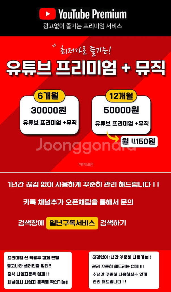 구매 문의는 게시물 하단 참고 부탁드립니다! 깨톡 : 일년구독서비스 검색하셔도 kaka오 채널 나옵니다.! 사업자등록증등 확인하실수 있습니다~ 6개월: 30000원 12개월: 50000원 프리미엄 초대장 보내드리고 수락하시면 적용되는 방식입니다 먼저 적용시켜 드리고 있습니다 판매만하고 신경안쓰는 타업체와는 수준이 다릅니다 자신있게 말할수있습니다!!