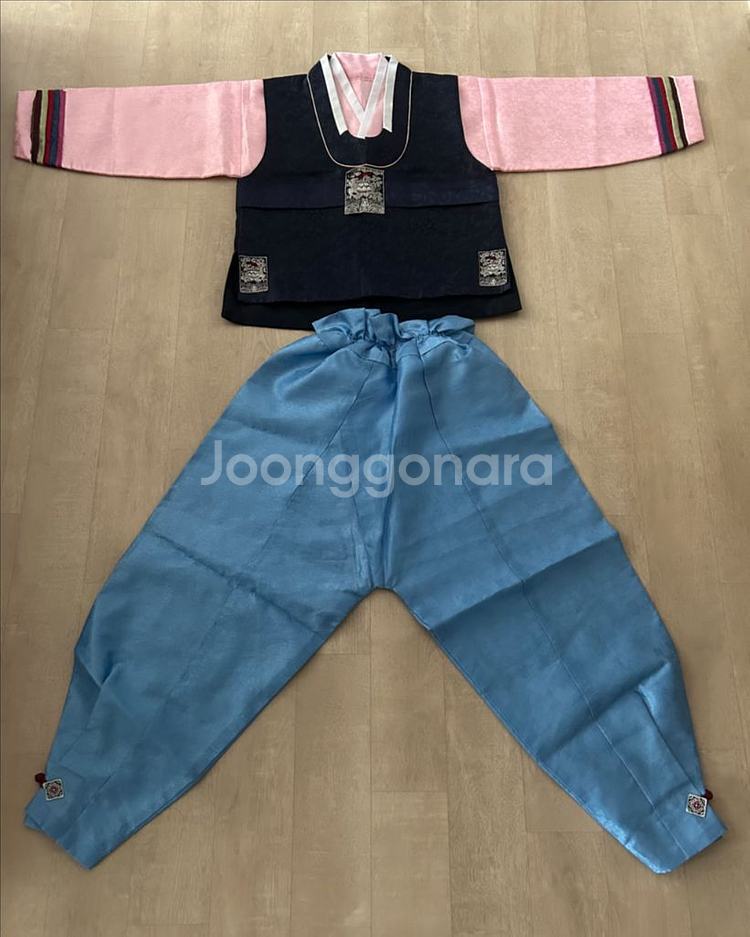 명절에 입기 좋은 남아 한복 세트입니다. 분홍색 저고리와 남색 배자, 하늘색 바지로 구성되어 있어요. 저고리 소매에는 색동 무늬가 있고, 배자에는 용 문양 자수가 놓여 있어 고급스러움을 더합니다 바지 길이는 약 81cm, 상의 길이는 약 51cm로 측정됩니다. 전체적으로 깨끗하고 좋은 상태입니다. 상태는 괜찮은 편이나 중고인 점 감안하시고 예민하지 않고 편하게 쓰실 분 연락바랍니다. 중고 거래상 반품, 환불되지 않으니 신중한 구매 부탁드립니다. 직거래는 노량진 신동아리버파크 관리소 앞이며 반값택배는 2천원, 일반택배는 3천5백원 추가됩니다.