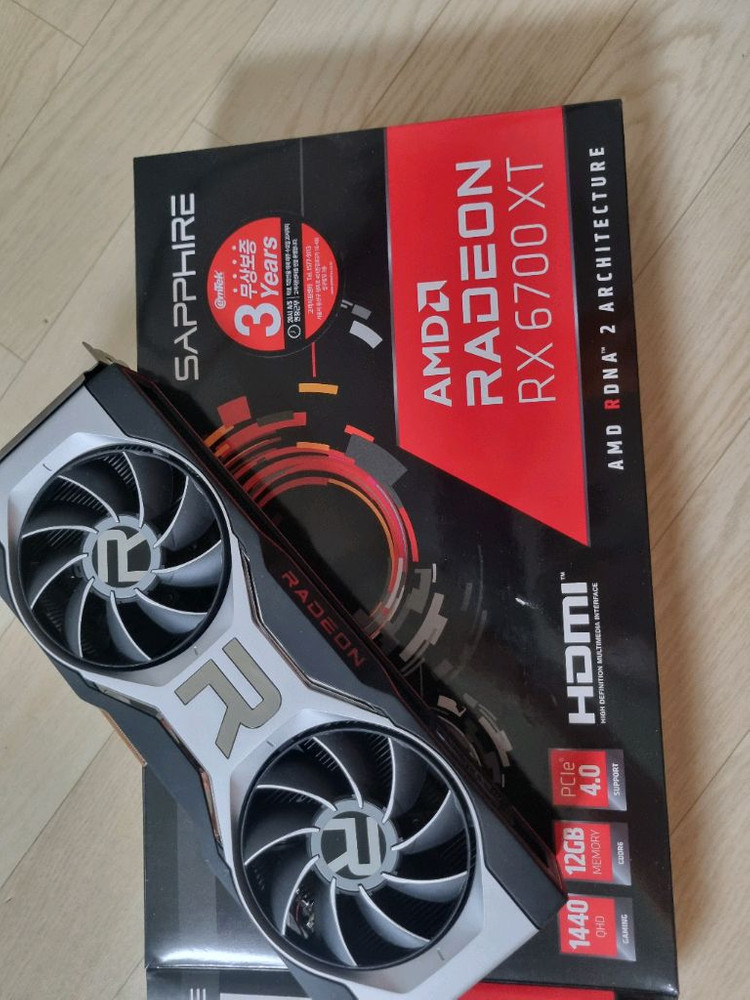 SAPPHIRE 라데온 RX 6700 XT D6 12GB 레퍼런스 모델 입니다. 그래픽카드 풀박 입니다. 흡연X 애완동물X 바빠서 게임은 못하고 사무용으로만 사용, 먼지하나 없이 깨끗합니다. 네고 안받고 안심거래 무료배송 해드립니다.
