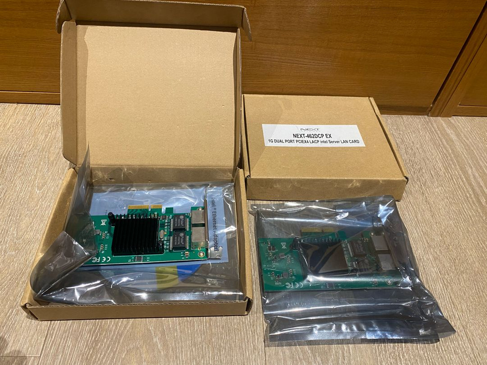 인텔 이더넷 어댑터 NEXT-462DCP EX 모델입니다. 1G Dual Port POE4X4 LACP intel 서버 LAN 카드입니다. 박스와 퀵 인스톨 가이드, 드라이버 CD가 포함되어 있습니다. 안정적인 네트워크 연결을 제공하며, 서버 환경에 적합합니다.