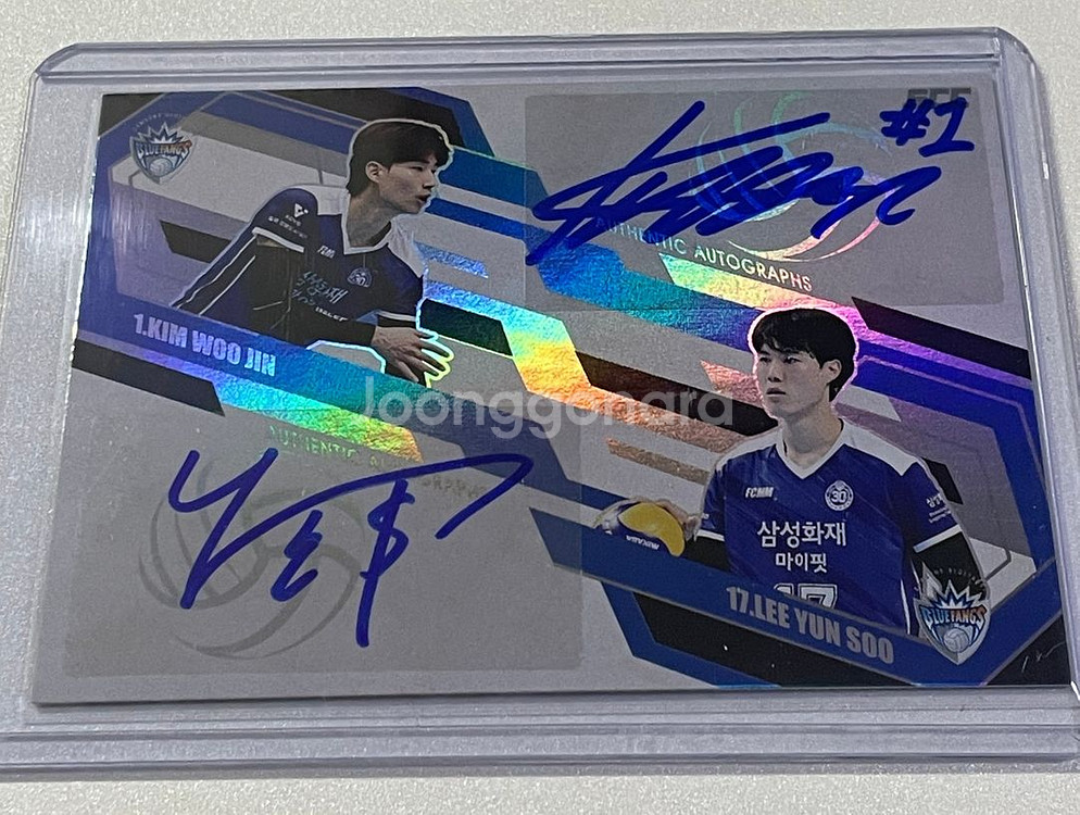 2026-01-27 에 발매 된 신상 배구카드 박스에서 나온 카드 입니다. 삼성화재 김우진 선수와 이윤수 선수의 7한정 듀얼오토 (7/7) 입니다. 7장 중 끝 번호인 7번으로 소장가치가 좋습니다. 무료 배송이니 편하게 문의 주세요~