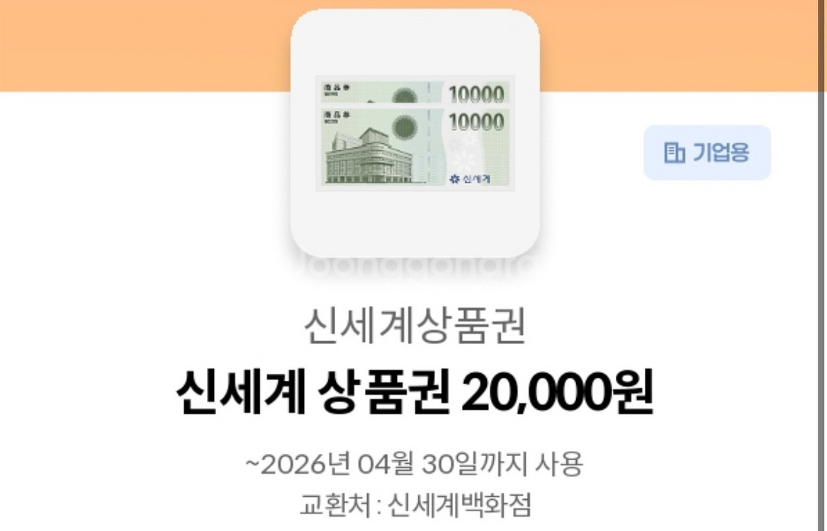 신세계상품권 2만원권 판매합니다 신세계백화점가서 직접 교환하셔야 합니다! 유효기간 : 2026년 4월 30일 문의주시면 입금 확인한 뒤 바코드 보내드릴게용