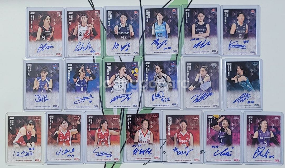2026-01-27 에 발매 된 신상 배구카드 박스에서 나온 카드들 입니다. 사진 및 리스트 보시고 필요하신 카드 문의 주세요~ 3-1. 정관장 최서현 오토 : 100,000원 3-2. 정관장 이호빈 오토 : 20,000원 3-3. 도로공사 강소휘 오토 : 100,000원 3-4. 도로공사 김미진 오토 : 15,000원 3-5. 도로공사 배유나 오토 : 15,000원 3-6. 도로공사 김다은 오토 : 15,000원 3-7. IBK기업은행 이주아 오토 : 35,000원 3-8. IBK기업은행 임명옥 오토 : 20,000원 3-9. IBK기업은행 빅토리아 오토 : 15,000원 3-10. IBK기업은행 킨켈라 오토 : 15,000원 3-11. 현대건설 김연견 오토 : 35,000원 3-12. GS칼텍스 유가람 오토 : 20,000원 3-13. 페퍼 이한비 오토 : 30,000원 3-14. 페퍼 임주은 오토 : 15,000원 3-15. 페퍼 박수빈 오토 : 20,000원 3-16. 페퍼 하혜진 오토 : 15,000원 3-17. 페퍼 이원정 오토 : 15,000원 3-18. 흥국생명 서채현 오토 : 15,000원 3-19. 흥국생명 피치 오토 : 15,000원 제 상점 합배송 5만원 이상 반택 무료, 10만원 이상 일택 무료로 보내드립니다~