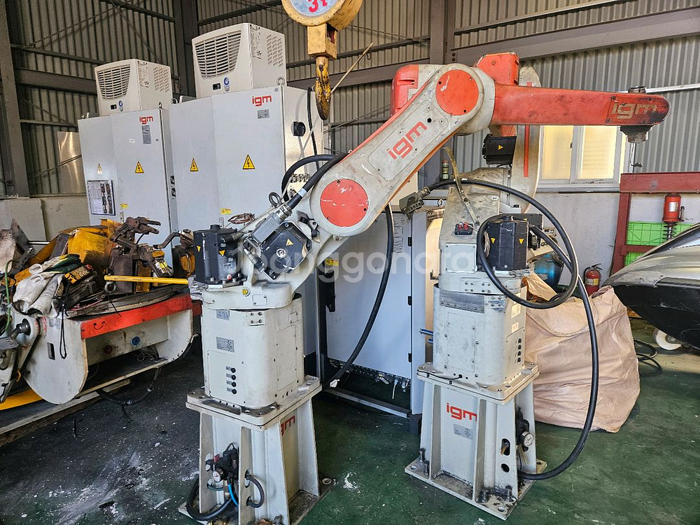 IGM RTi476S 모델의 로봇 입니다. 자동차 부품공장에서 사용하던 것이며 용접 로봇 입니다. 국내 굴지 업체에서 사용되던 것이며 로봇과 스윙테이블 그리고 제어반이 세트로 있습니다. 가격은 협의해야 함으로 문의 부탁드립니다. 장비는 경남고성에 있습니다.