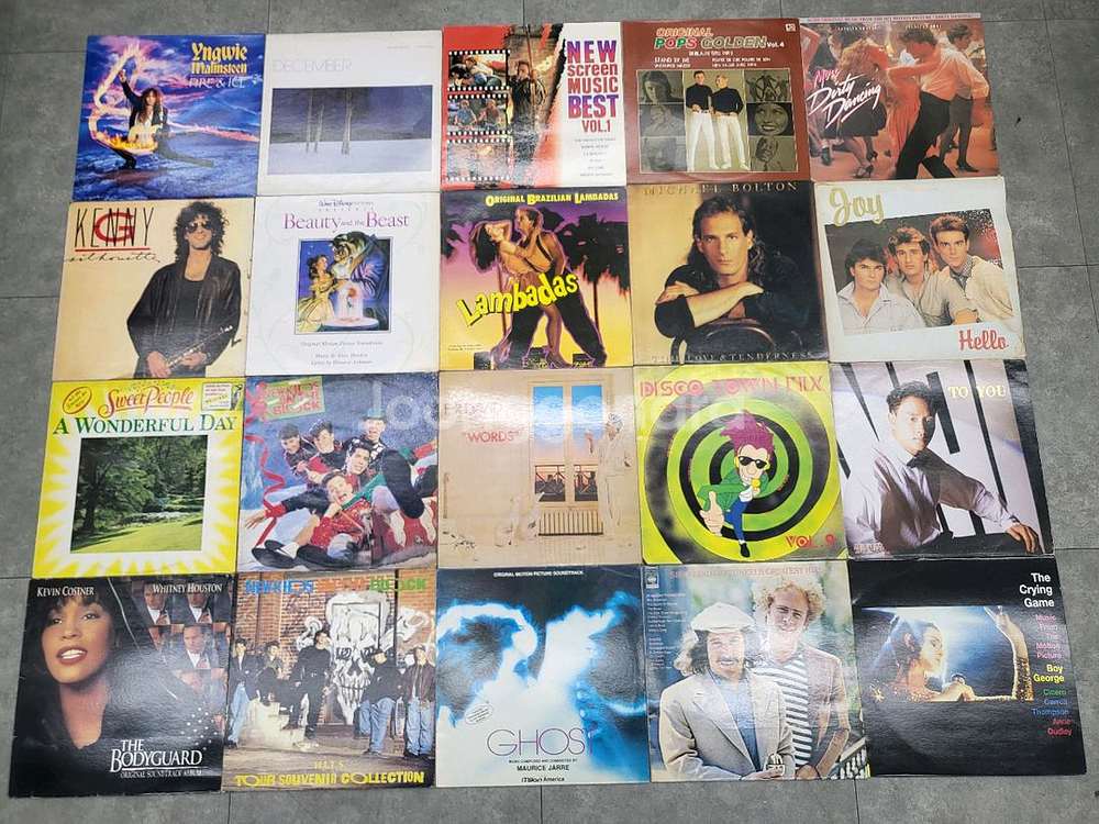 다양한 팝송 LP 레코드판 모음 20장 일괄 국내 라이센스 팝송, 영화 OST 등 다양한 장르의 음반들이 포함되어 있습니다 오래된 음반들이라 사용감은 있지만, 소장 가치 있는 음반들입니다 자켓상태 모두 양호한 편입니다. LP상태도 양호합니다. 자켓과 LP가 모두 제대로 맞습니다. 주옥같은 팝뮤직을 골라 듣는 재미가 쏠쏠합니다. 20장 일괄로 저렴하게 판매합니다. 직거래,택배 4천 모두 가능합니다. - 사이먼앤 가펑클 - 마이클 볼턴 - 더티댄싱 - 뉴키즈 온더 블록 - Michael Bolton, Kenny G 등 다양한 아티스트의 음반이 있습니다 - 추억을 되살리는 소중한 음반들을 만나보세요.