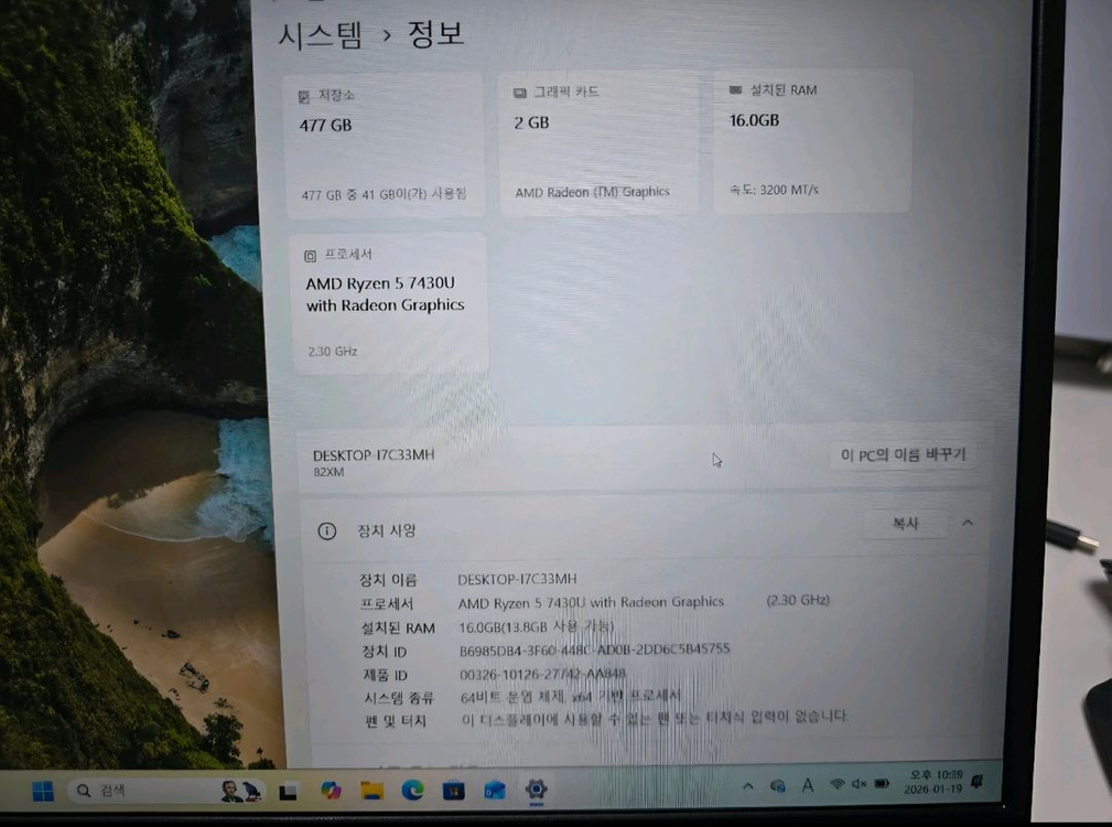 cpu 라이젠5세대 7430u 램16기가 sdd512기가 그래픽 라데온 내장 2기가 모델명 15ABR8 사무용으로 널널하고 롤 같은 게임은 렉 없이 잘 돌아갑니다 램 16기가로 게임이나 편집시 부족하지않고 ssd도 512기가로 저장공간 충분합니다 구매가 80초반에 구매후 몇번 사용안해서 깨끗합니다 작년에 구매했습니다 네고문의 답장안합니다 깨끗합니다 구성품 충전기 노트북 마우스 마우스 패드 드립니다 모델명 레노버 아이디어패드 Slim3 15ABR8 82XMOOELKR 안전거래 안합니다 동탄 직거래 합니다