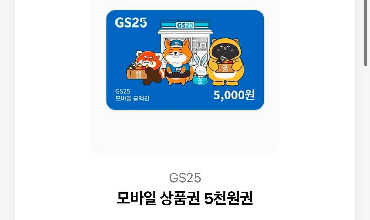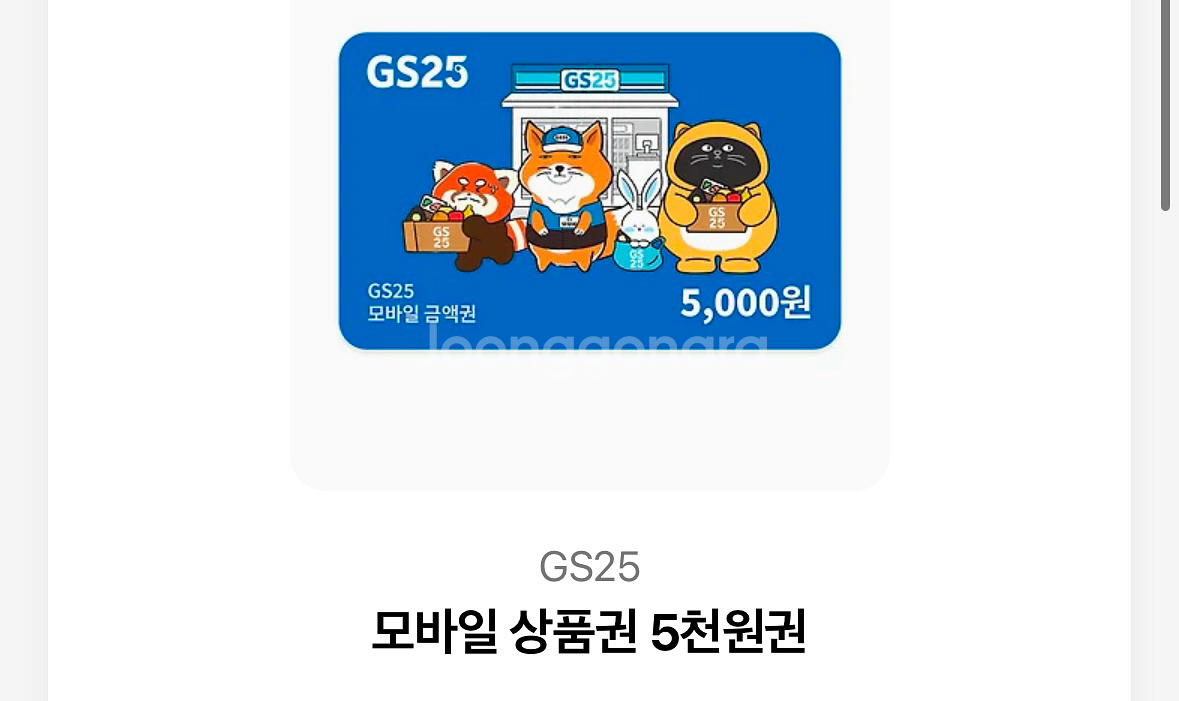 개인정보(거래정보)를 주고받는 행위는 사기에 노출될 수 있으므로 즉시 중고나라로 신고해 주세요편의점에서 사용 가능한 5,000원 모바일 상품권이에요. 편의점에서 다양한 상품 구매할 때 현금처럼 사용하실 수 있습니다.