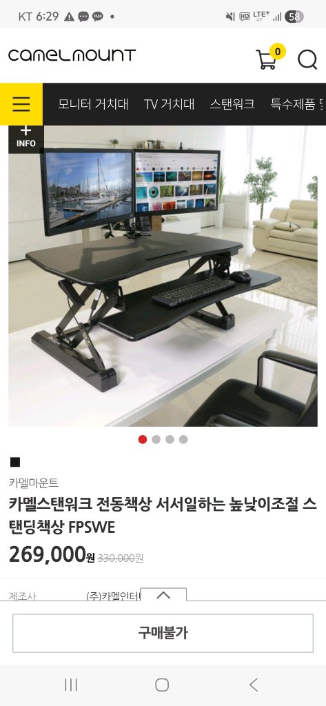 서서 일할 때 쓰는 전동식 높이 조절 책상입니다. 2025. 9월 구입 깨끗하게 썼어요. 책상 위에 설치해서 편리하게 사용하실 수 있어요. (요통, 디스크 있는 분 사용하면 좋습니다) 카멜마운트(핏쳐) 제품으로 견고합니다. 무게로 인해 직거래 원합니다.