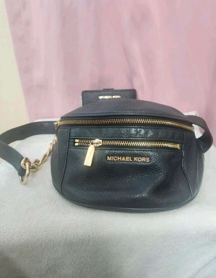 정품 벨트백이에요 . 블랙 컬러에 골드 지퍼로 고급스럽고 실용적인 아이템입니다. 사용감은 있지만 전체적으로 깔끔한 상태예요. 가방내부 화장품이뭍었어요 지워질지는모르겠엉욧