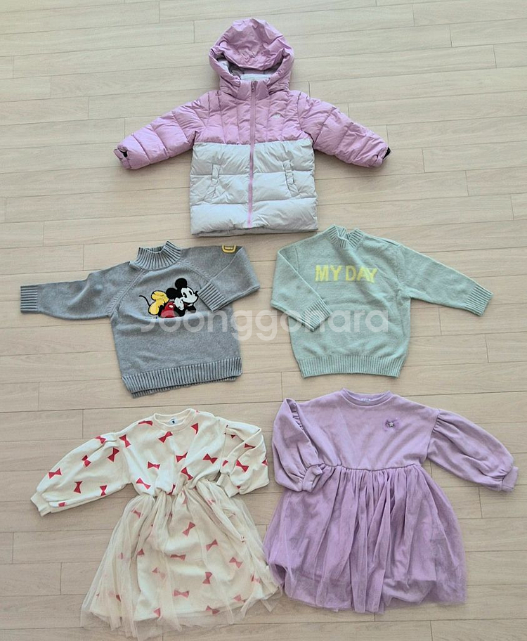 ●뉴발란스 키즈 덕다운 패딩 120 ●래핑차일드 니트 120 두벌 ●덤(젤리스푼 기모원피스120 두벌)