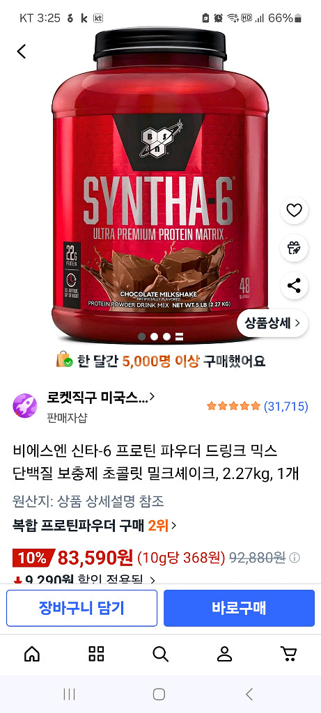 비에스엔 신타-6 단백질쉐이크 2.27Kg입니다. 미개봉 새상품이고 오늘 배송받았습니다. 후기한번보세요. 별만점입니다. 너무 맛있고 좋다네요. 직수입 제품입니다. 동부산이나 일부 인근은 편의상 퇴근길에 가져다 드릴 수도 있습니다.(지역한번 줘보세요.) (단,출발전 1만원 헛걸음방지 받고출발함) > 저는 택배기사가 아닙니다이^^;;; 매너부탁드림. (현관앞까지 갔다달라는등,무리한 요구는 X입니다.) 직접오시면 7만원 쿨거래 가능합니다.(동부산) ㅡ 소비기한 : 2027년 08월 12일까지 ㅡ 구매하시거나 필요한 문의 하실분은 연락 부탁드립니다. 중고가 아니고 "미개봉" "새제품" 입니다. 이유있는 네고는 가능합니다. 개인거래 물품 특성상 교환 & 환불 불가능합니다. (근데 진심 걱정안하셔도 됩니다.) 직거래는 만난 뒤, 현장네고 절대불가합니다. 거래안합니다. 매너거래 당부드립니다. 카드할인? 회원가 포함해도 어디서 구입하시던 이게 전국최저가입니다. 신용은 제 거래내역 참고부탁. 편하게 문의 부탁드립니다. (늦어도 꼭 답드림)