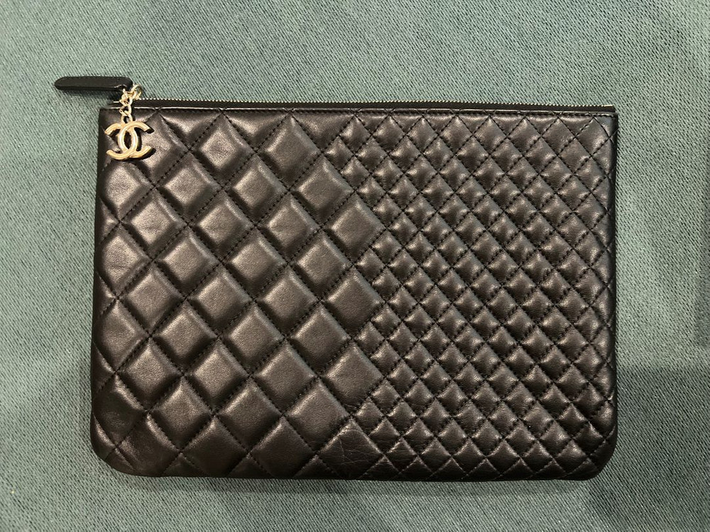 샤넬 램스킨 클러치 미듐 사이즈(사이즈 약 28×20cm)블랙 판매합니다. 스페인 바르셀로나 샤넬 매장에서 직접 구매했는데 흔한 클래식디자인과 비슷한듯 달라서 같은 디자인은 거의 못 본 것 같아요. 샴골색 샤넬 로고도 지퍼에 달려있어서 존재감있고 소장가치 있는 클러치입니다. 구매 얼마 후 임신해서 사용은 많이 안했는데 램스킨이라 모서리부분 마모랑 사용감 약간 있어서 사진 충분히 보시고 문의부탁드려요.(가방관리 잘하는편이라 실물은 많이 티안나요.) 매장 구매시부터 박스는 없었고(바르셀로나 매장에서는 파우치는 박스를 안주더라구요.)더스트백, 개런티카드 등 구매 시 제공되는 구성품 모두 포함되어 있습니다. 명품 중고 특성상 반품환불 불가이니 잘 보시고 댓글주세요.^^
