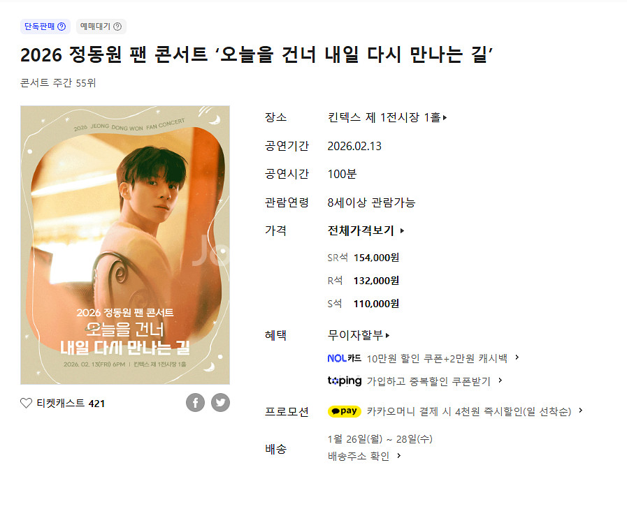 정동원 콘서트 2구역 5열 1석 3구역 5열 1석 티켓수령했는데 어머님이 못가신다해서 앞자리라 추가금 주고 구입했는데 ㅜ 다시 판매해봅니다 직거래 가능
