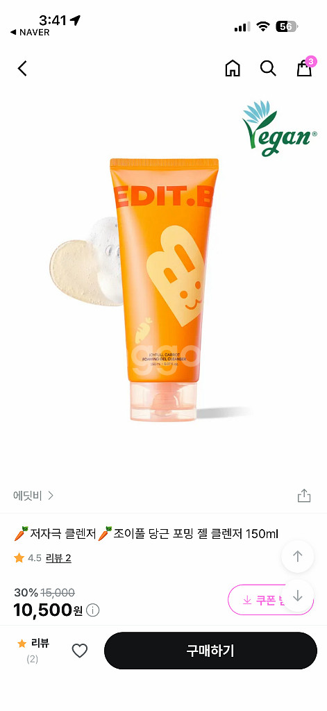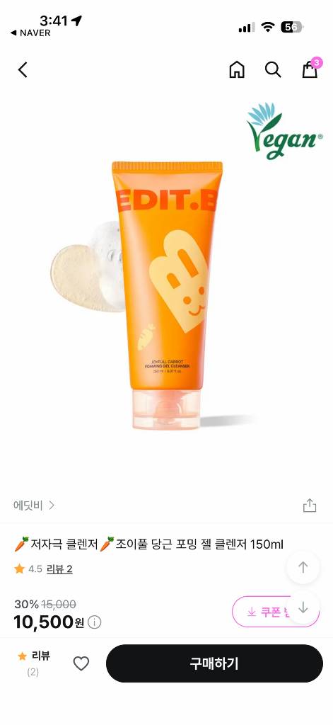 에딧비 조이풀 당근 포밍 젤 클렌저 150미리 미개봉 새제품