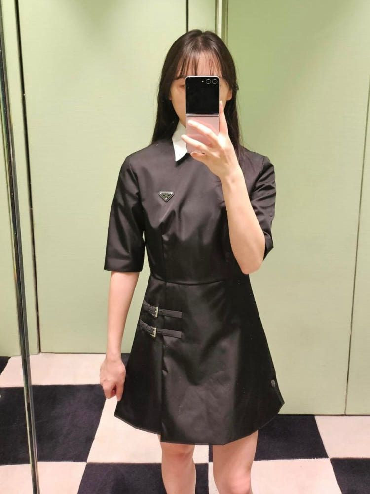프라다 리 나일론 미니 드레스 / 36S PRADA Re-Nylon mini-dress 제품번호: 230714_1WQ8_F0002_S_OOO 2024년 10월 강남 갤러리아 프라다 매장 구매 했습니다. 실착 1회 아주 단기간 착용 후 보관중입니다 공홈가 3,200,000원 공식 홈페이지 https://www.prada.com/kr/ko/p/re-nylon-mini-dress/230714_1WQ8_F0002_S_OOO ────────────────── ■ 사이즈: 36S (공식 36 기준) 가슴 80.4cm / 허리 59cm / 힙 86cm ※ S 표기는 기본 기장보다 약 5cm 짧은 버전 공식 길이 80cm → 36S 약 75cm ────────────────── ■ 컬러: 블랙 ■ 소재: 100% 재활용 폴리아미드(Re-Nylon) ■ 원산지: 이탈리아 핏 앤 플레어 실루엣으로 허리 라인을 정돈해주면서 자연스럽게 퍼지는 구조적인 라인이 특징입니다. 안감이 있어 착용감이 안정적이고 형태 유지가 잘 됩니다. 단정한 라운드 넥 디자인이며, 후면 지퍼와 후크 잠금 방식으로 깔끔하게 착용 가능합니다. 앞면에는 패브릭과 가죽 스트랩 디테일이 더해져 미니멀한 디자인에 입체적인 포인트를 주며, 가슴 부분의 에나멜 메탈 트라이앵글 로고가 프라다 특유의 아이코닉한 무드를 완성합니다. 격식 있는 자리, 하객룩, 단독 착용 모두 활용도 좋은 모델입니다. * 배송비 무료입니다 * 여러 상품 구매시 할인됩니다 * 더 보고싶으신 부분 사진 요청하시면 바로 찍어 보내드립니다 * 로젠택배로 안전하고 빠르게 보내드립니다 * 구매자분께서도 기분 좋은 거래가 되었으면 좋겠습니다