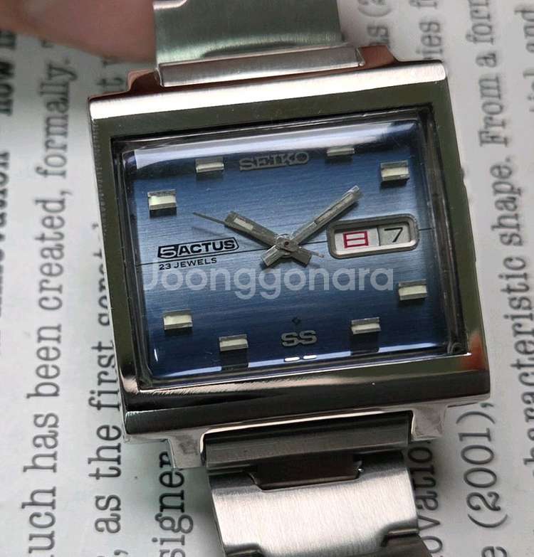 ⚠️아래 내용 꼭 읽고 문의주세요⚠️ !! 교환, 업자 절대 사절. 상식밖 거래, 비매너, 사적 요청, 의미없는 대화 X !! 아무런 대화없이 결제하지 마시고 대화 먼저 부탁드리며, 실시간 재고 확인 및 충분한 안내 후 거래 진행 !! 제 사진을 도용해 터무니없는 가격에 올려놓는 도용 사기글들에 주의하세요 !! 구매 전 상점 정책 필독 !! 빈티지 시계 및 기계식 시계에 대한 이해도가 있는분만 연락주세요 _________________________________ 레어] 빈티지 세이코 액투스SS 테레비 블루 그라데이션 한자 데이데이트 빈티지 세이코 라인 중, 오리지널 순정 블루 그라데이션 다이얼이 들어간 희귀 모델입니다. 특히 슈퍼마리오의 벽돌을 연상시키는 재밌는 가로매치 와이드보이 인덱스가 들어가서 감상하는 재미가 쏠쏠합니다. 또한, 내수용 모델이기 때문에 고풍스러운 한자 데이데이트가 적용된다는 매력도 있으며, 양각 세이코 레터링 로고와 SS로고, 보기드문 디자인의 인덱스도 시계의 멋을 더해줍니다. 일반 모델 보다 디테일이 더 뛰어난 상위 개체라 차별화된 인생시계 찾는분께 강추드립니다. 특히 이모델은 제치 오리지널 브레이슬릿도 파손이나 분실없이 잘 보존돼 높은 소장가치와 함께 더욱 메리트가 있습니다. 양도전 큰 비용 들여서 전체 최고급 폴리싱, 무브먼트 오버홀 및 점검까지 모두 완료해 바로 착용하시면 되며, 실물이 아주 예쁩니다. 해당 다이얼은 오리지널판이 귀해서 가급적 세이코 매니아분이나 수집가분께 양도됐으면 하는 바람이 있습니다. 귀한 시계라 직접 뵙고 양도 예정이며, 직거래 군자역입니다.