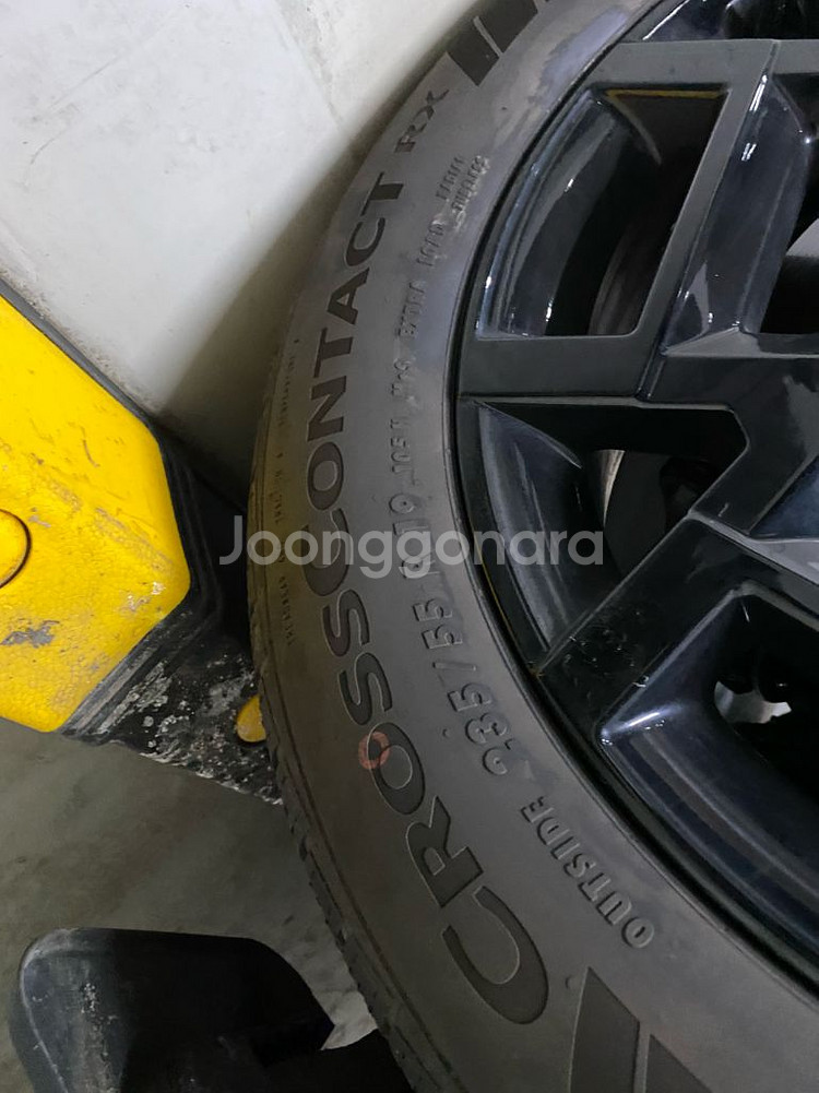 컨티넨탈 크로스 컨택트 RX 4계절 타이어 4짝 판매 합니다.(24년 2주차 생산 타이어) 사이즈는 235 55 19 이고 24년 3월 차량 출고하여 약 15,000~17,000km 주행 하였습니다. (윈터타이어와 교대로 사용하여 대략 계산 된 키로수 입니다.) 펑크(지렁이)하나도 없는 타이어 입니다. 현재 윈터타이어로 교체 후 해당 타이어는 업체에 보관 중 입니다. 구매 하실 경우 업체에 같이 방문하여 가져 가실 수 있도록 하겠습니다.