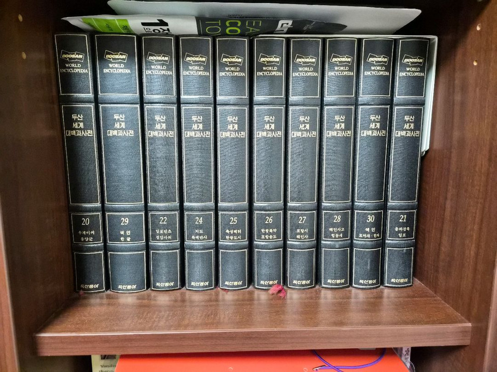 두산 세계대백과사전 전집입니다 총 30권으로 구성되어 있습니다.. 전권 파본이나 찢어짐 없습니다. 상태 최상입니다. 집앞에 내놓으면 가지고 가시면 됩니다. 들어드리거나 할수는 없어서 차랑 카트를 가지고 오셔야해요. 방배동 삼호아파트입니다.