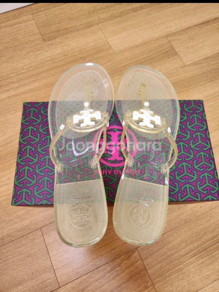 토니버치 샌들이에요. 박스와 더스트백 포함되어 있고 상태 양호합니다. 깔끔한 투명 소재로 여름철 착용하기 좋아요.