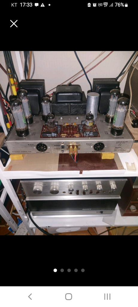 개인정보(거래정보)를 주고받는 행위는 사기에 노출될 수 있으므로 즉시 중고나라로 신고해 주세요Dynaco Dynakit stereo 70a 진공관 앰프입니다. 2대중 한대를 내놓습니다. 정류관,출력관은 러시아제 하모닉스고 초단관은 미제 구관입니다. 사진에서 보시듯이 전체적인 상태 아주 깨끗합니다. ※ 시간 조율후 청음 가능합니다.