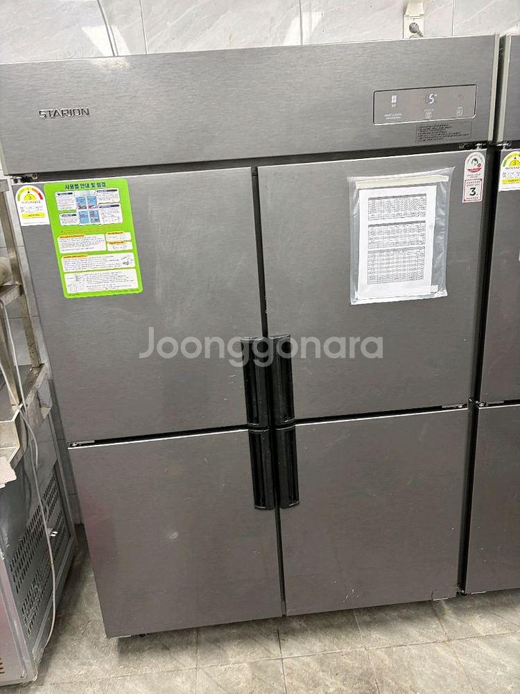 업소용으로 사용하던 4도어 냉장고예요. 상태 양호하고 정상 작동하며, 업소나 대용량 냉장고 필요하신 분께 추천드립니다. 전부 45박스이구요 1.그랜드우성 올 냉동고 18년 12월식 1개 판매완료 2.그랜드우성 냉동 냉장 반반 22년 5월식 1개 50만 3. 그랜드우성 냉동 냉장 년식 모름 30만 4. 스타리온 올 냉장고 24년 4월식 1개 60만 5. 스타리온 올 냉장고 24년 8월식 1개 60만 6. 스타리온 올 냉동고 21년 판매완료 입니다. 개인 업장에서 사용중이구요 위치는 경기도 시흥시 거북섬동입니다. 직접 가저가시거나 용달 불러주시면 됩니다. 2층이고 엘레베이터 있습니다. 010 5558 5094