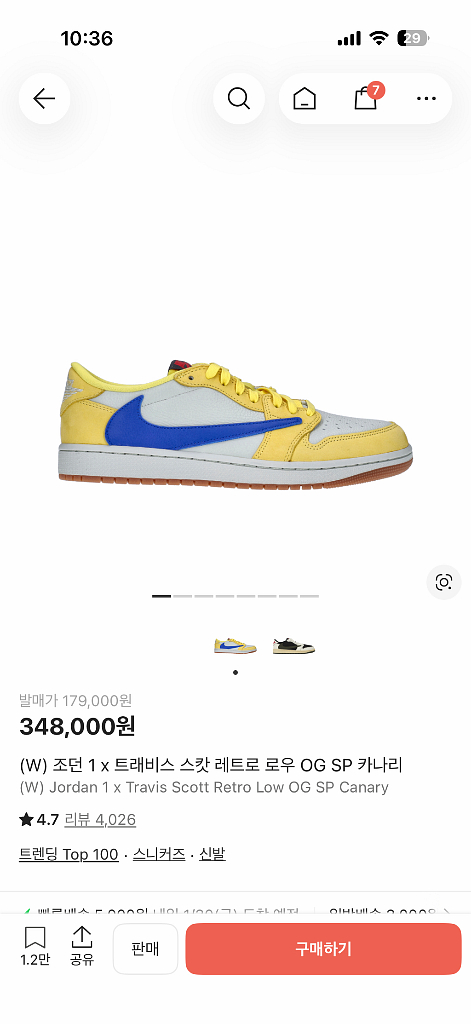 새상품 나이키 조던1 트래비스 스캇 카나리 로우 250 새상품입니다 풀박 그대로 소지하고 있고 사진 궁금 하시면 보여드리겠습니다! ☺️ 따로 궁금하신 점 없으시면 바로 안전결제 부탁드리겠습니다 !! 크림에서 현재 250사이즈 42만원에 판매 중 제품입니다!! 연락주세요 💭👀