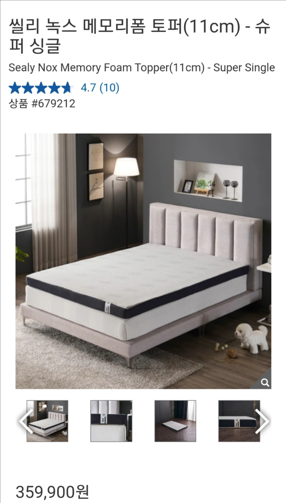 씰리 녹스 메모리폼 토퍼(11cm) - 슈퍼 싱글 미사용 입니다 박스만 개봉됐습니다 가격 290,000