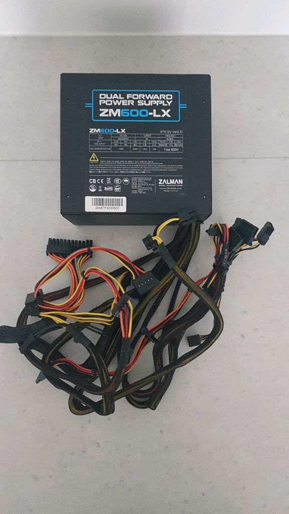 600W 파워서플라이 판매합니다. 케이블 모두 포함되어 있고 상태 양호해요. 컴퓨터 조립용으로 사용하시면 됩니다.