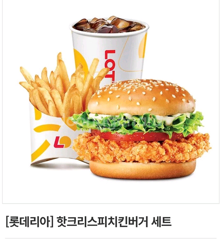 [롯데리아] 핫크리스피치킨버거 세트 정가 8300원 발송에 3분정도 걸리니 미리 연락주세요
