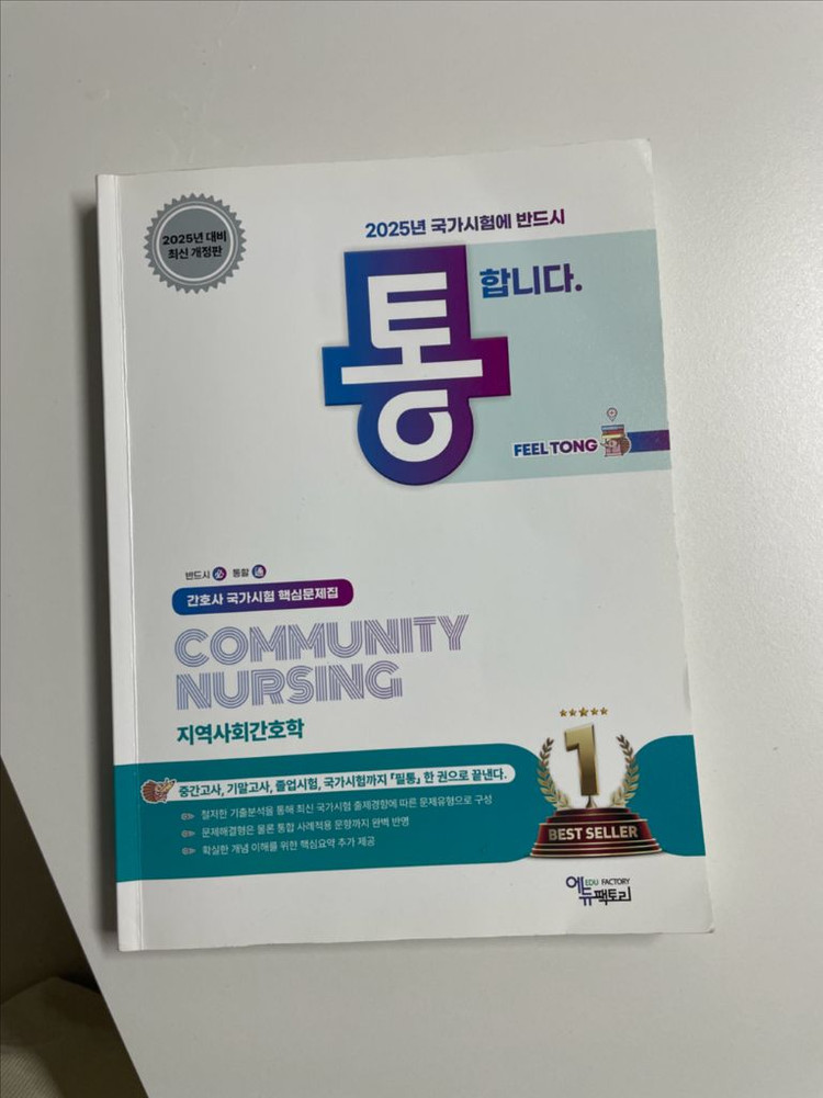 2025년 국가시험 대비 지역사회간호학 필통 문제집 입니다. 기화펜으로 풀었고 채점만 형광펜으로 되어 있어서 푸는데 문제 없습니다!