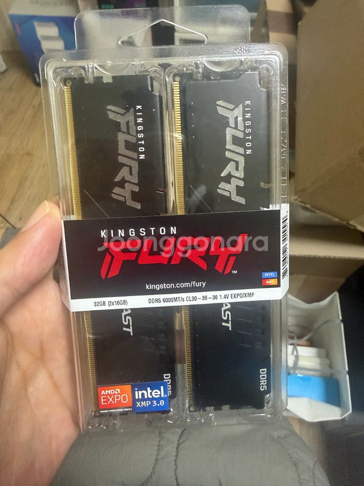 DDR5 32GB 메모리입니다. 미개봉 새제품으로 포장 상태 양호해요. 고성능 게이밍이나 작업용으로 좋습니다.
