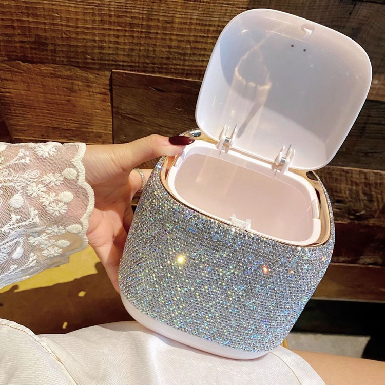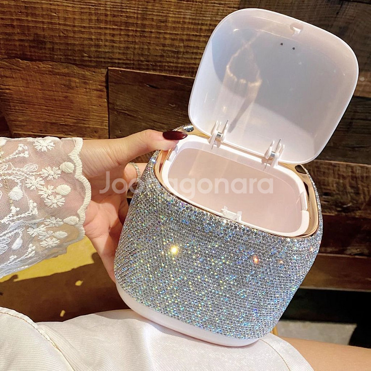 반짝이는 크리스탈 장식이 돋보이는 스퀘어 미니 휴지통입니다. 내부는 깨끗한 화이트 컬러로 실용적이고, 상태도 양호합니다. 사무실 책상위 혹은 식탁위에 놓고 사용하시면 좋아요 사이즈:13*13.5 중량:535g