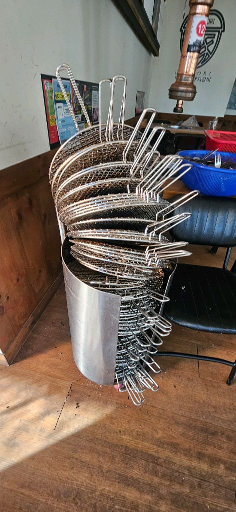 식당에서 사용하던 업소용 스테인리스 석쇠이에요.700개정도 됩니다 석쇠보관함은 3만원 입니다