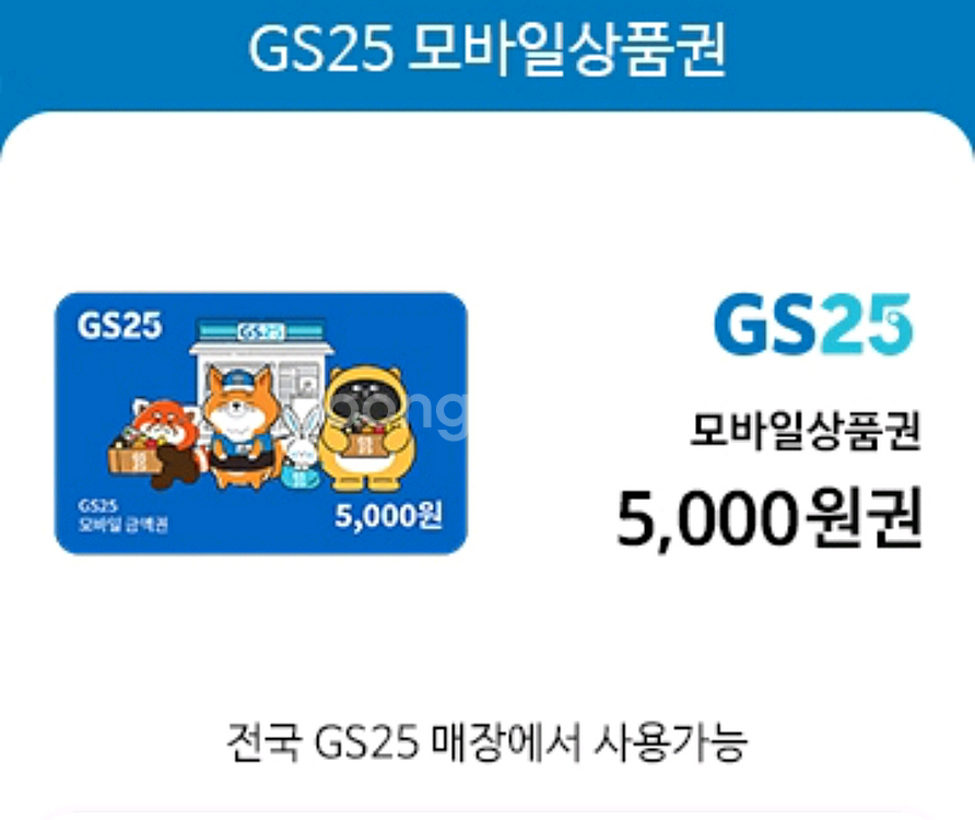 편의점에서 사용 가능한 5,000원 모바일 상품권이에요. 전국 매장에서 어디서나 간편하게 사용할 수 있어서 정말 편리해요! 기한 1/31까지입니다!! (오늘까지) 중고나라 채팅 또는 아래 번호로 문자주세요 91육오 - 육0오팔
