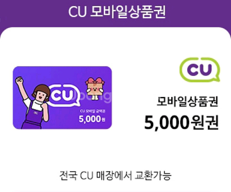 CU 편의점에서 사용 가능한 5,000원 모바일 상품권이에요. 전국 매장에서 사용 가능합니다. 기한 1/31까지(오늘까지)입니다!! 중고나라 채팅 또는 아래 번호로 문자주세요 91육오 - 육0오팔